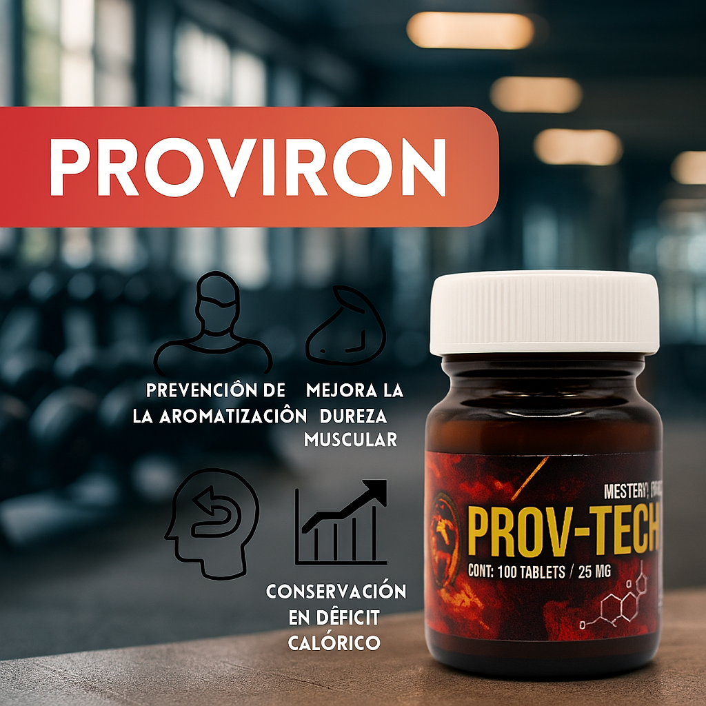 Proviron (nombre comercial de Mesterolona) es un andrógeno oral derivado de la DHT (dihidrotestosterona) que no es un esteroide anabólico típico. Su función principal no es el aumento de masa muscular, sino el mejoramiento de los niveles de testosterona libre, la reducción del estrógeno y la mejora del rendimiento sexual y físico. Es ampliamente usado en culturismo como complemento durante ciclos de esteroides o en el post ciclo (PCT), aunque no reemplaza a los SERMs.